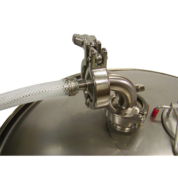 The tri-clamp blow-off assembly from Blichmann Engineering is a must have for those pushing the limits of their Fermenators and using especially vigorously fermenting strains of yeast, such as some Belgian and wheat strains. This assembly is essentially a tri-clamp fitting that connects to the top of the Fermenator lid where an airlock would normally go. An elbow that connects with tri-clamps is included, as well as a 1" barb for use with 1" tubing (tubing not included) that can be led out into a bucket or other vessel to create a blowoff airlock. With 1" of clearance, fermentations are sure to be free of hop and krausen jams that can create pressure buildups in the Fermenator, as these materials pass harmlessly into the overflow vessel. Once high krausen has dropped, a normal airlock and stopper can be fitted into the assembly for the remainder of fermentation. In addition to being a blowoff assembly, a 1" tri-clamp to 1/2" hose barb is included for use in pressuring the fermenter in order to pump beer out and rack into kegs or other containers. The easy way to both control fermentation and seamlessly pressurize the Fermenator for racking!