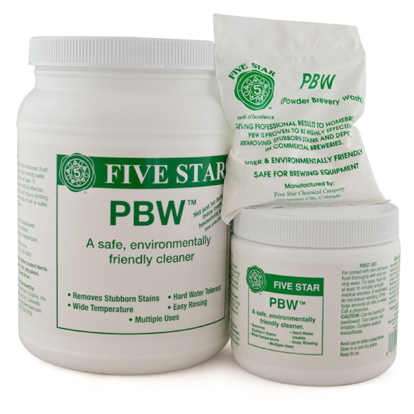 • PBW (Powdered Brewery Wash) is an alkaline cleaning agent used extensively in the professional brewing industry to clean a range of brewing equipment, from brew kettles to fermenters and bright tanks. It has been specially formulated with a mixture of buffering agents that makes it safe for use in cleaning most metals and plastics, as well as safe on skin. It uses oxygen to penetrate carbon and protein soils, and is not affected by hard water. It is environmentally friendly, too! PBW is used by professional and home brewers alike to keep their equipment clean.
