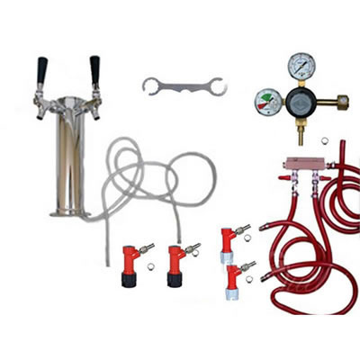 2 Faucet Draft Beer Tower Keg Kit - Taprite Regulator - PIN LOCK