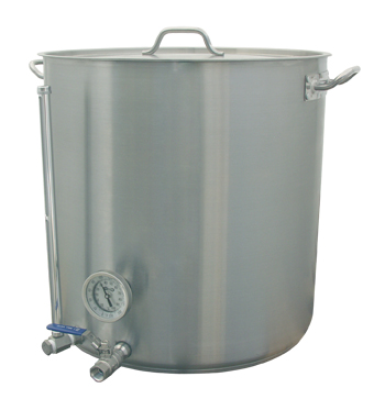 Some home brewers are more serious than others, and if you’re the type of experienced beer enthusiast who needs a really heavy duty kettle, the More Beer! 26 Gallon Hot Liquor Tank (HLT) is essential to your brewing setup. This is the very same kettle as our MoreBeer! Heavy Duty Brew Kettle, but we added an extra coupler to be used with a sight gauge, and the thermometer and ball valve are included, as well.,Because the 26 Gallon Hot Liquor Tank is made of incredibly durable stainless steel, it is highly resistant to denting that other tanks acquire when dropped.  The tri-clad bottom features an aluminum core sandwiched between two sturdy layers of food-grade stainless steel, which creates even heat distribution to eliminate hot spots, prevents you from scorching your wort and makes cleanup easier than ever before. The handles are made from rolled stainless steel which is incredibly strong but still easy on your hands.,The MoreBeer! Hot Liquor Tank is also available in smaller 8 gallon and 15 gallon sizes.,Specifications,,,10 Year Warranty from MoreBeer!,,,Food Grade Stainless Steel with brushed finish will stay good looking for years,,,Extra thick!! 1.2 mm thick sidewall and a 5mm thick bottom,,,Includes stainless lid and handles,,,The same kettle we use in our famous BrewSculpture Brewing Systems,,,Inner dimensions are 19.75" Tall x 19.75" in Diameter
