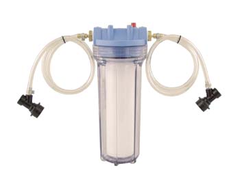 The beer filter gets installed inline between two ball lock Cornelius kegs using CO2 pressure to push the beer out of the full keg through the filter and into the clean keg. This kit is designed to filter out particles down to 1 micron, which is considered fine filtration. At one micron the beer will be clear after filtration provided you do not have a starch haze. Filtering also accelerates the conditioning process to just a few days. Most of our customers who use the filtering kit find that they; keg beer, chill it overnight, filter the next day, carbonate, and are drinking clear beer in a couple days. For those who want to bottle beer without sediment, filtering combined with the use of a counter pressure bottle filler will allow you to put crystal clear, carbonated beer into bottle. The beer filtering kit comes with one 10" filter housing, a 1 micron 10" spun poly sediment filter, fittings for connection to the filter housing, 3' of beverage line, clamps, and two beverage out ball lock quick disconnects.,,Download the FIL40 instructions here.,,Spun-polypropylene filters are disposable filters and cannot be cleaned and used more than once. However, you can filter multiple kegs with one filter. 3 micron will remove most yeast, and 1 micron filtration will remove almost all yeast. All filters are rated nominal (will filter out 80-85% of matter at given rating).