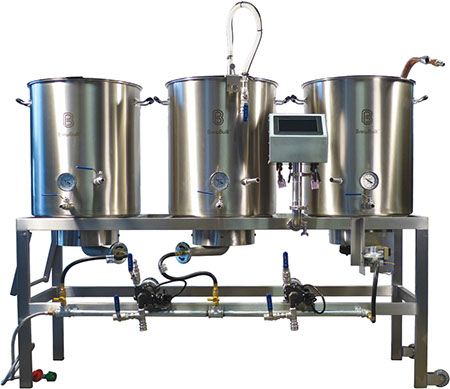 The Low Rider BrewSculpture™,Easy accessibility is the name of the game with the Low Rider. The Low Rider is our top of the line Single Tier Brew Sculpture that allows you to look into and interact with every kettle without the need for a step or ladder. The easy access is one reason the Low Rider is preferred by professional breweries like Sierra Nevada and Russian River for test brewing.,Includes two pumps. Where the Tippy Dump system utilizes gravity to drain wort from the mashtun into the boil kettle, with the Single Level you use an additional March Pump instead.,Key Features of the Low Rider BrewSculpture™,,,Made in USA in the MoreBeer! Metal Shop,,,304 Stainless Steel TIG welded stands. The ultimate frame material that will outlast you. No paint or powder coating.,,,Every BrewSculpture™ includes folding handles and built-in rear casters that allow you to move your BrewSculpture™ with ease.,,,Oversized 304 stainless BrewBuilt Kettles with welded fittings, notched lids, internally etched volume markers, aluminum clad bottoms, and silicone handles. Built to last.,,,Our "Large" option will come with 22 gallon kettles, while the "XL" model will come with 30 gallon kettles. ,,,The fluid path is easy to use and clean. We've included the time tested, top of the line March pumps along with heat resistant food-grade silicone tubing and our own specially designed stainless quick disconnects.,,,Burners are fast, efficient, quiet and have great flame control.,,,Mashtun includes the Ultimate Sparge Arm with innovative design to eliminate hot-side aeration. The center draw outlet with quick disconnect is locked in during mashing but easily disconnects for cleaning. The mash screen has a very low volume of base water under the screen to aid with efficiency and mash consistency. The perforated stainless mash screen is reinforced for use with pump recirculation and includes a silicone gasket to make a perfect seal with the kettle wall. Internally etched volume markers make mash water additions super easy.,,,Boil Kettle includes innovative Whirlpool maker for leaving hops and trub behind. Volume markers are etched on the inside so you know exactly how much wort you have at all times. The lid notch is super handy for hanging hop bags, using an immersion chiller, etc., but when not is use an included silicone plug seals the notch. The bottom of the boil kettle is tri-clad with a 4mm aluminum core sandwiched between two layers of 304 stainless. The aluminum core eliminates scorching and the cleaning that comes with a scorched kettle.,,Control Panel Option,The ultimate in control, flexibility, repeatability, and ease-of-use. Only the very highest-end commercial breweries have digital, touch-screen, control panels. You’ll have one at home. Built around a 7 inch touch screen, with resistive touch, it controls times and temperature, while reminding you when to make additions throughout the entire brewing process.,Some Key Features of the Control Panel Package:,,,Easy Mashing - Choose from 3 preset mash schedules or Custom design your own with up to 5 steps. From there the control panel guides your mash through the temp raises and time rests automatically.,,,Always Hot - Controller maintains the Hot-Liquor tank temperature you choose by turning the burner off and on automatically.,,,Auto Sparging -  Sparge water flow is controlled automatically with integrated Mash Tun float switch,,,Timer Alarms - Built in boil timers remind you when to add hops, finings, or anything else,,,Manual Mode -  allows you to control pumps for anything you want such as cleaning.