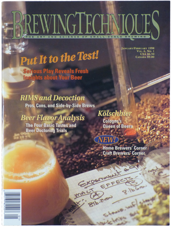 Volume 6, No. 1This issue contains:-RIMS and Decoction - Pros, Cons, and Side-by-Side Brews-Kolschbier - Cologne's Queen of Beers-Home Brewer's Corner / Craft Brewer's Corner-Beer Flavor Analysis - The Four Basic Tastes and Beer Doctoring Trials
