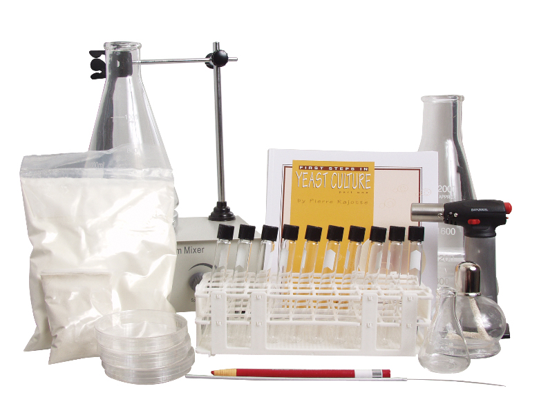 Includes all of the supplies that an advanced "Yeast Farmer" would deem necessary to culture, store, and grow yeast to large volumes. You will need a pressure cooker to make up Malt Agar for plates and slants.,Includes: Stir Plate, Torch, a 50, 1000, and 2000 ML flasks, Alcohol Lamp, Pack of 20 Sterile Plastic Plates, 10 Borosilicate Glass Slant Tubes, Inoculation Needle, Agar, DME, Wax Pencil, and Yeast - The Practical Guide to Beer Fermentation.