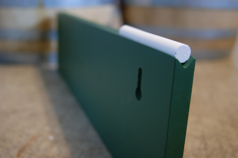 Green Chalkboard wall menu board with erasable chalkboard surface for use with kegerators in home bars, commercial bars, restaurants and pubs.